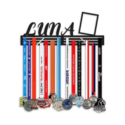 Abmessungen eines Musterregals 40 cm – Länge 40 cm, Tiefe des Regals 11 cm (einschließlich eines Abstands von 1 cm für hängende Medaillen), Höhe 12 cm.